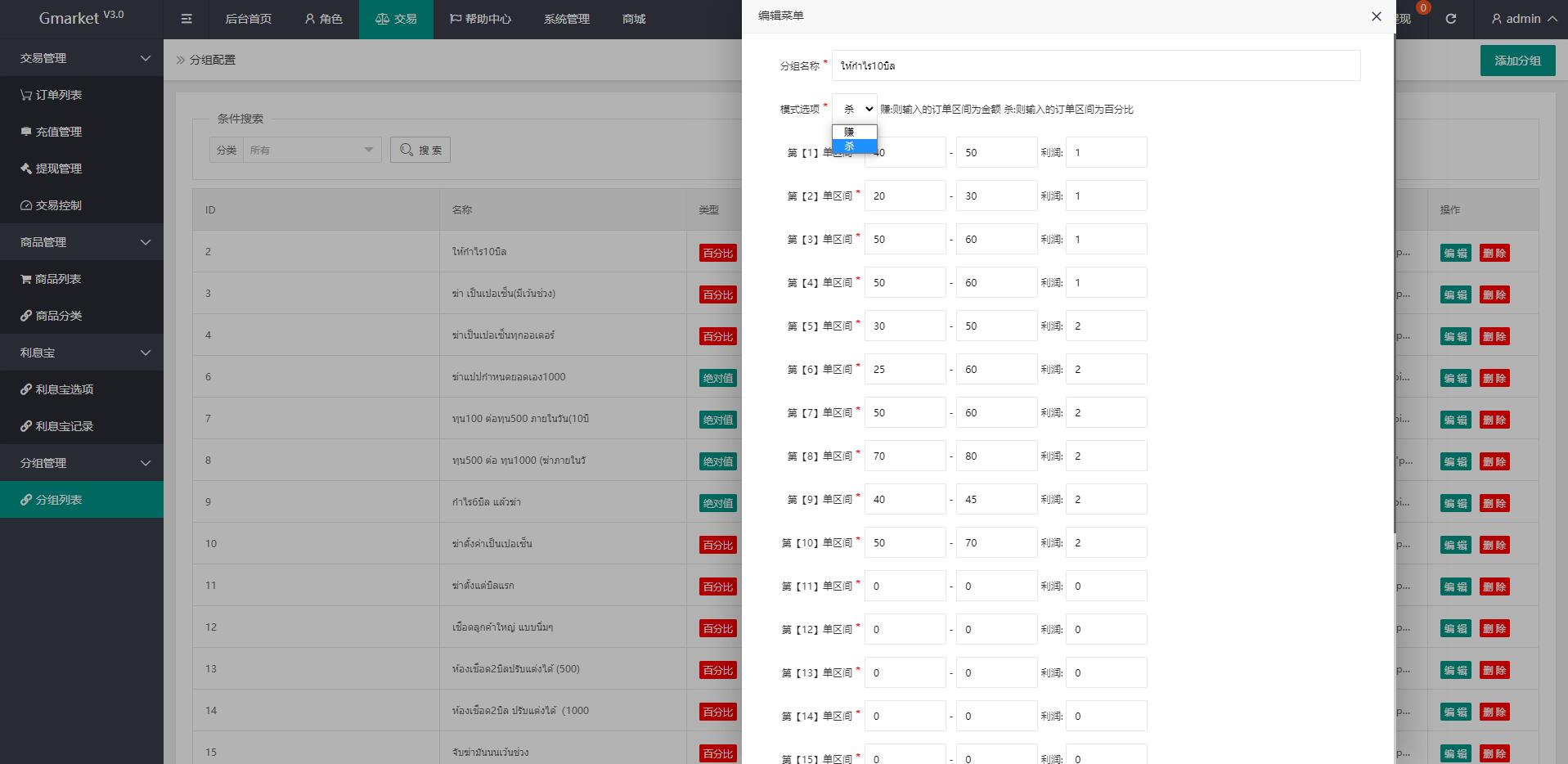 功能支持分组、百分比、固定值、连单设置、充值彩金等众多功能