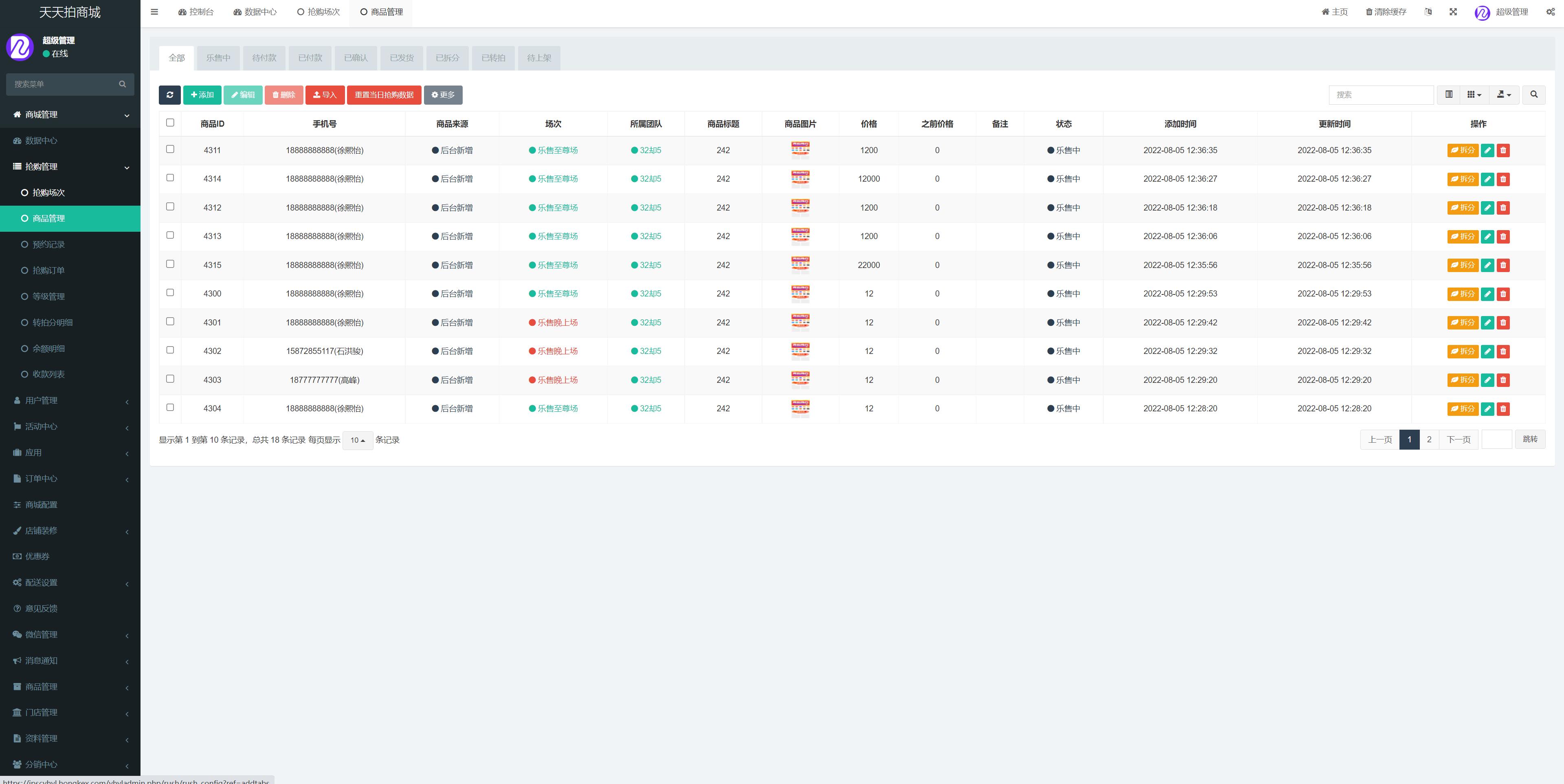2022无敌高端竞拍转拍商城,多团队长,自己团队内部抢拍,独立时间独立商品!