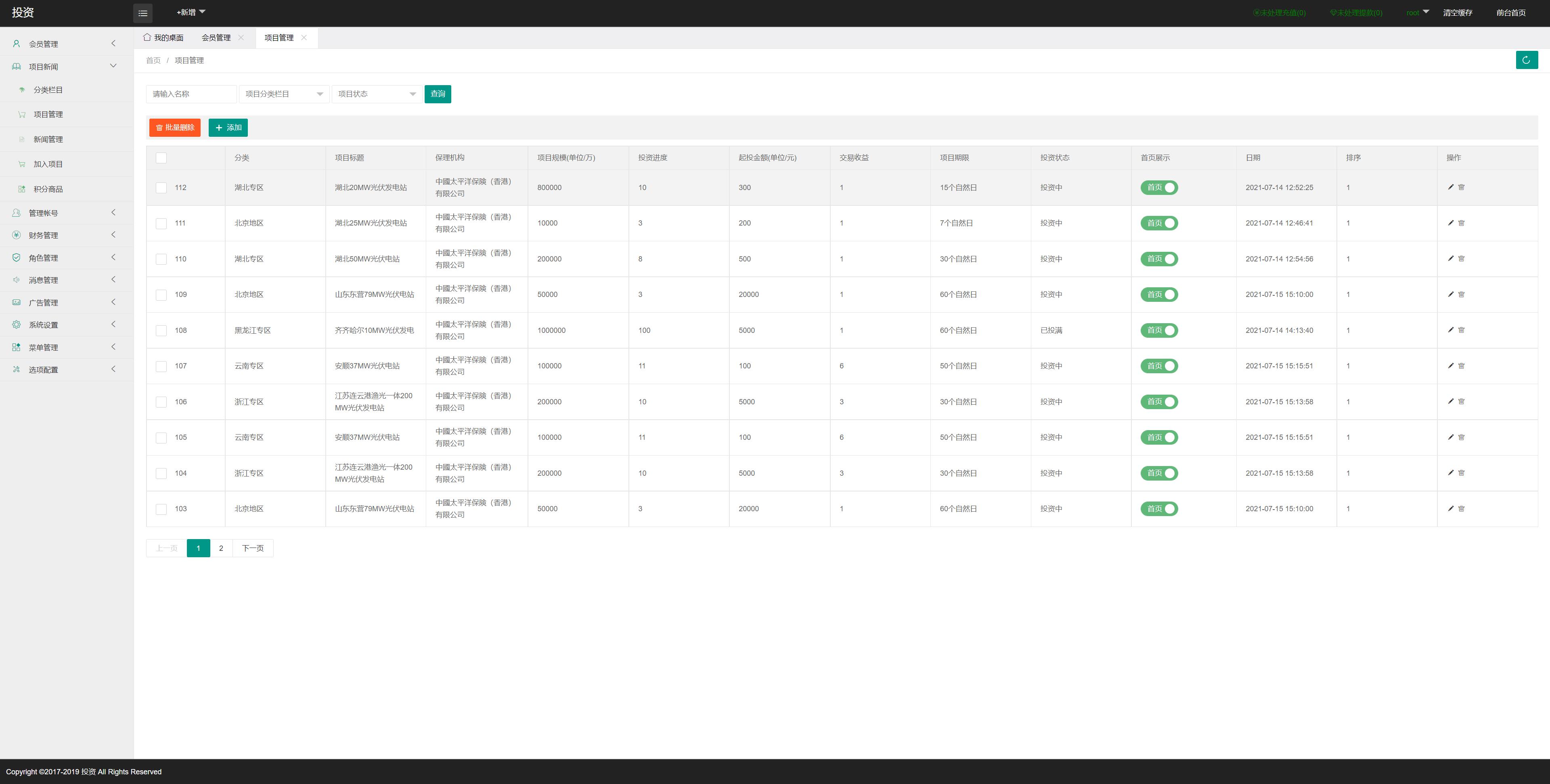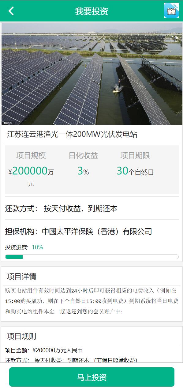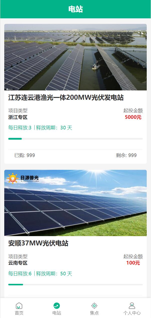 新UI光伏电站投资系统/项目投资理财源码/投资返利/在线客服