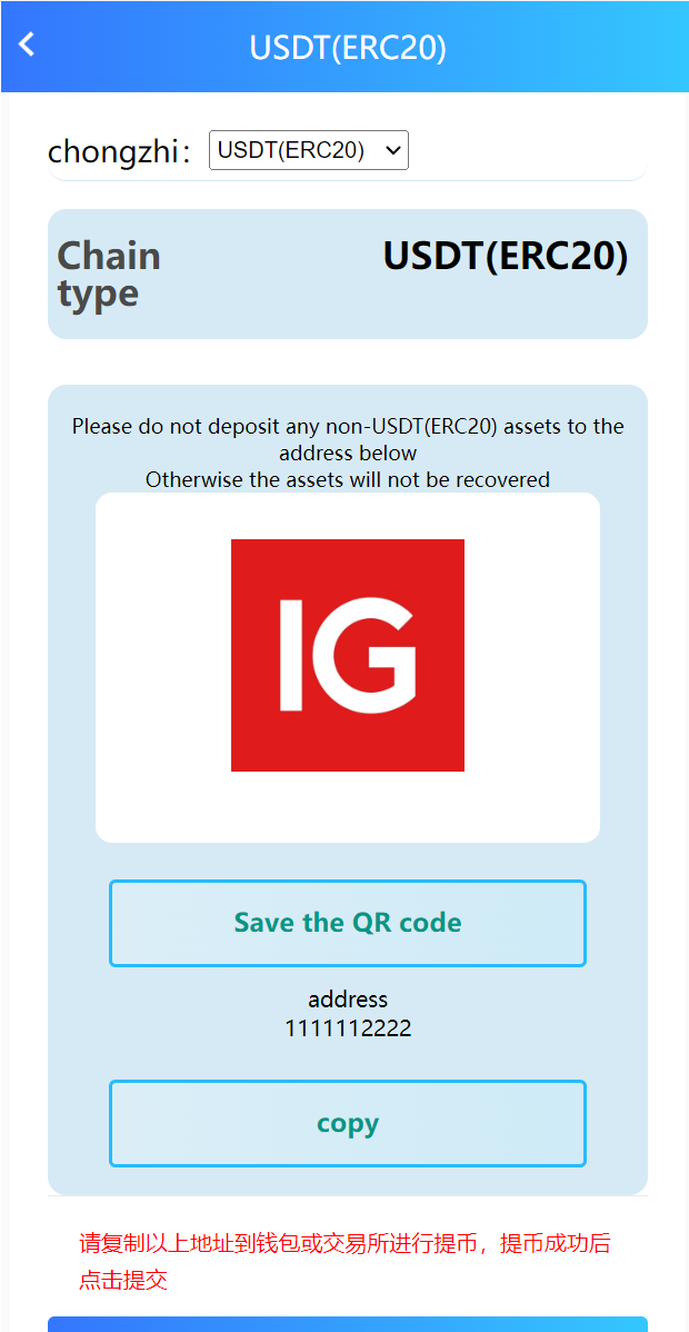 充币依然使用usdt充值,使用usdt购买矿机获取TRX收益