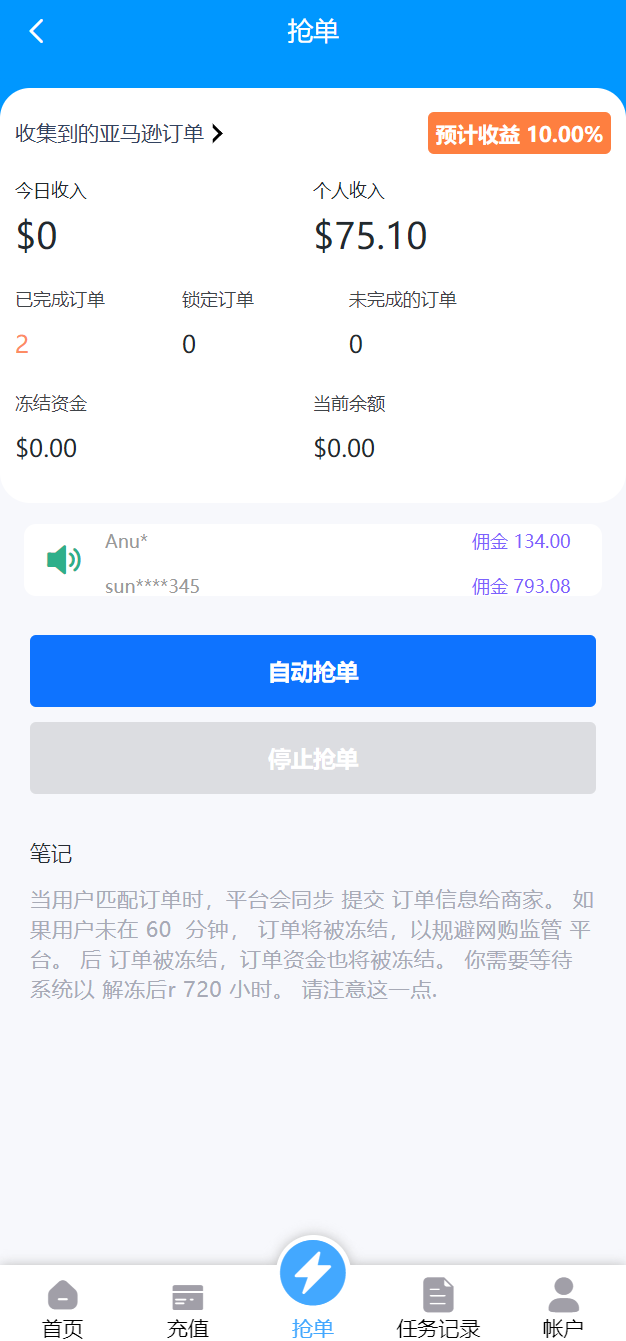 自动抓取亚马逊订单,可以停止抢订单-抓取订单做任务