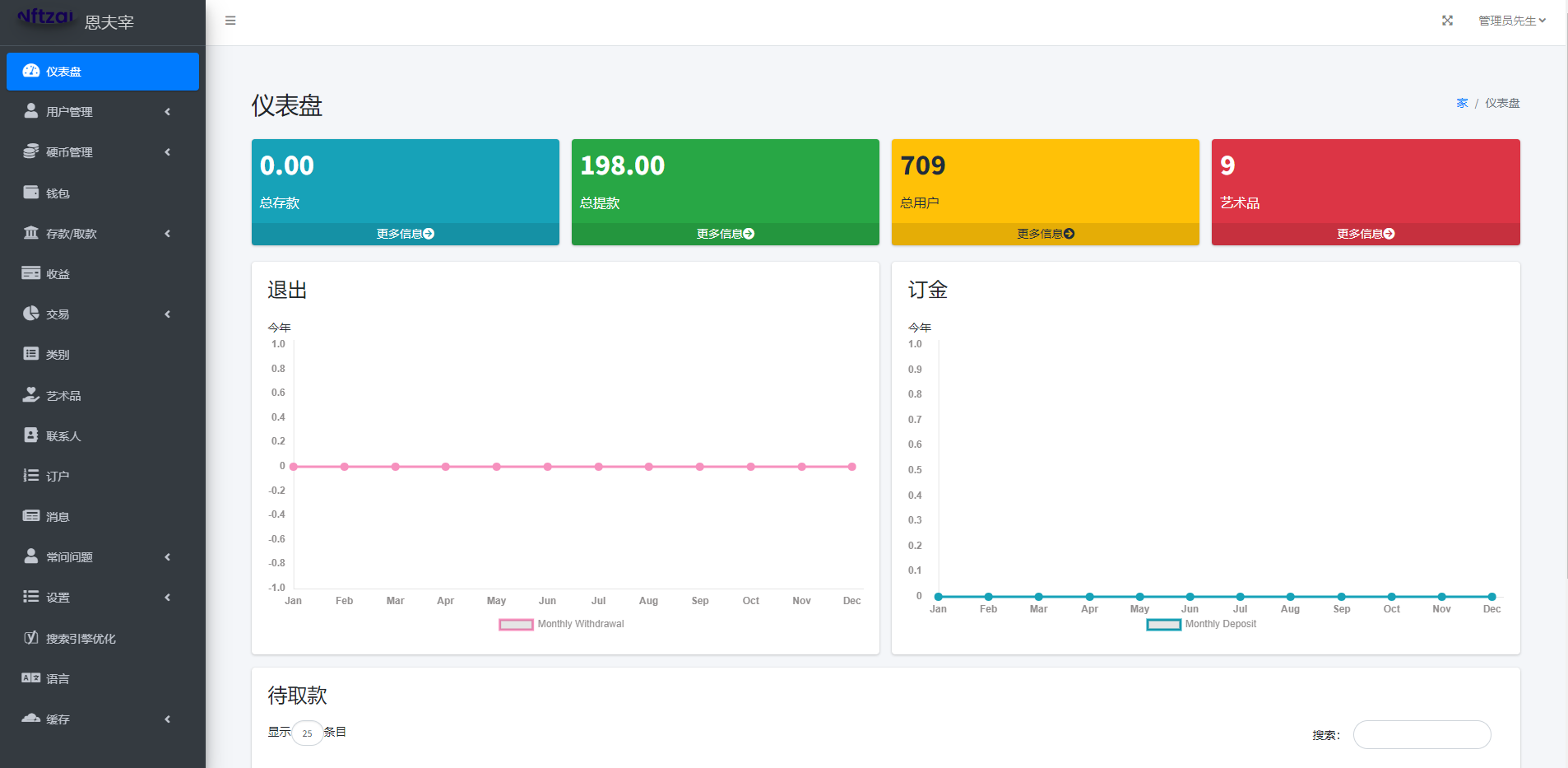 一款多语言NFT艺术品交易系统、购买艺术品的 nft 市场。它提供加密货币存款和取款系统。它为使用该网站提供了非常好的用户体验。附加了一个漂亮且超级容易定制的管理面板。