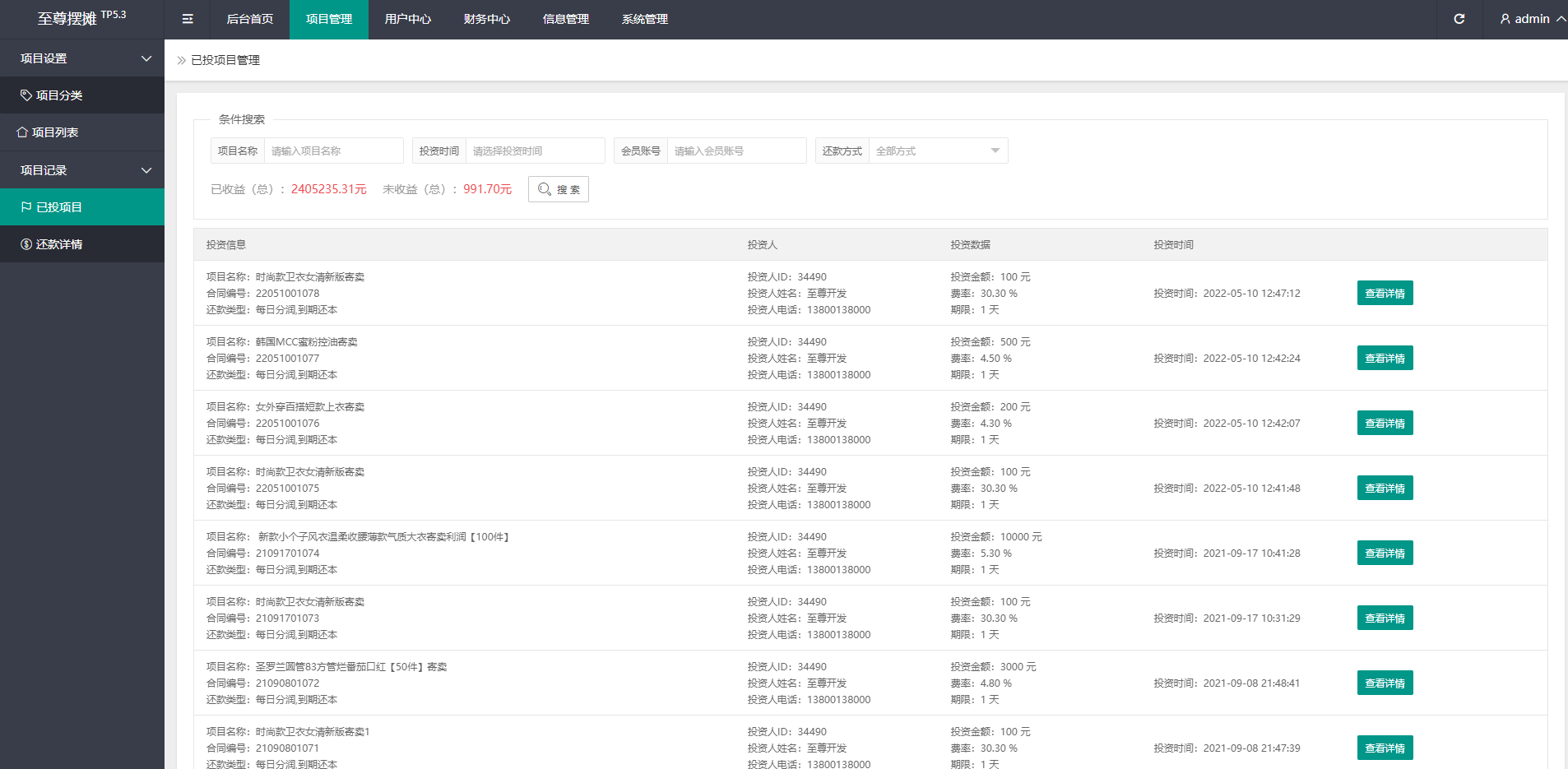 女性投资盘/摆摊系统/摆摊投资分红/投资理财源码