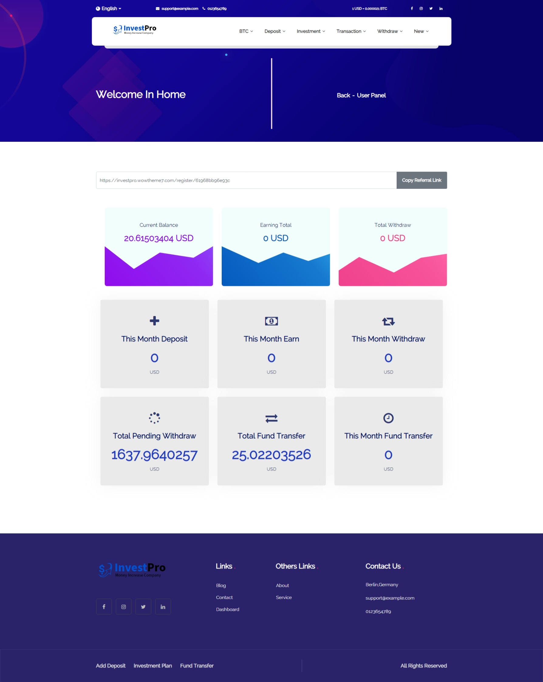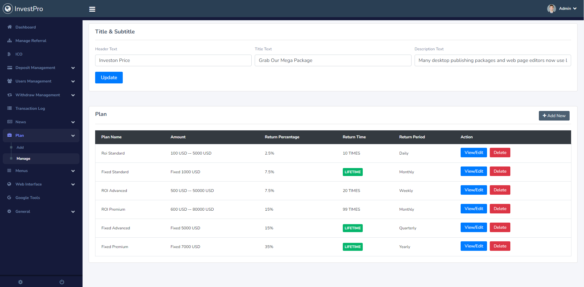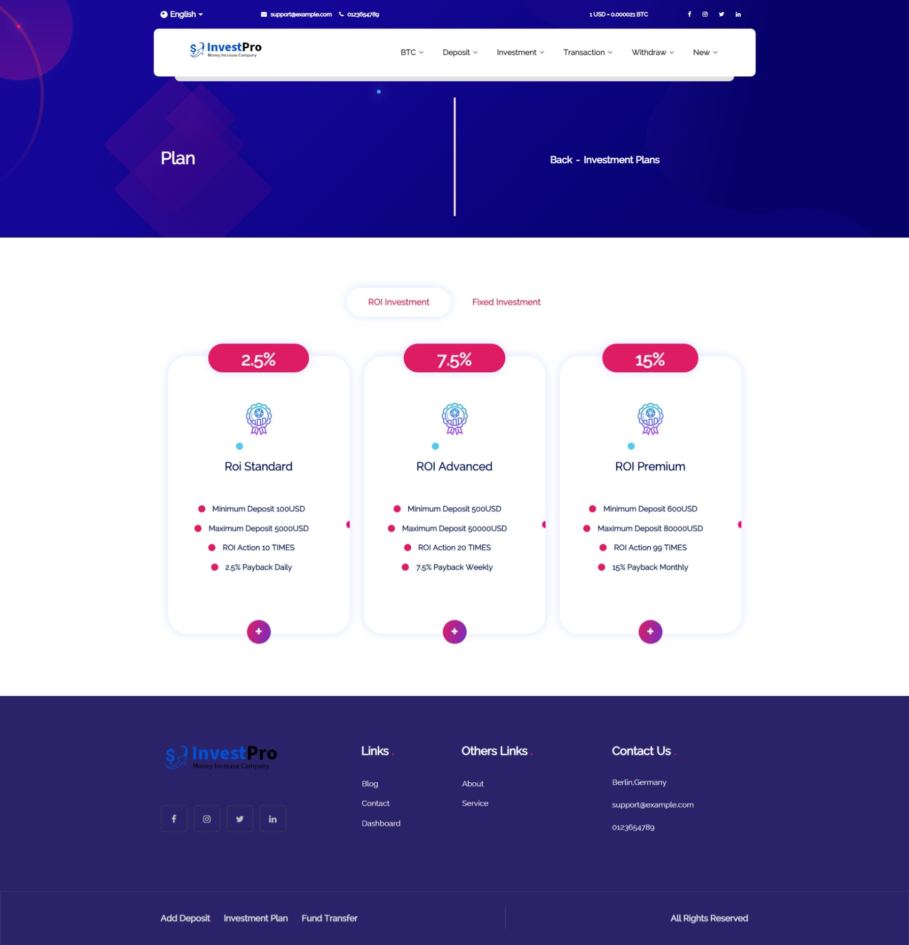 一款国外的多语言投资分红系统,默认支持三种语言,后台支持添加其他语言,源码自适应