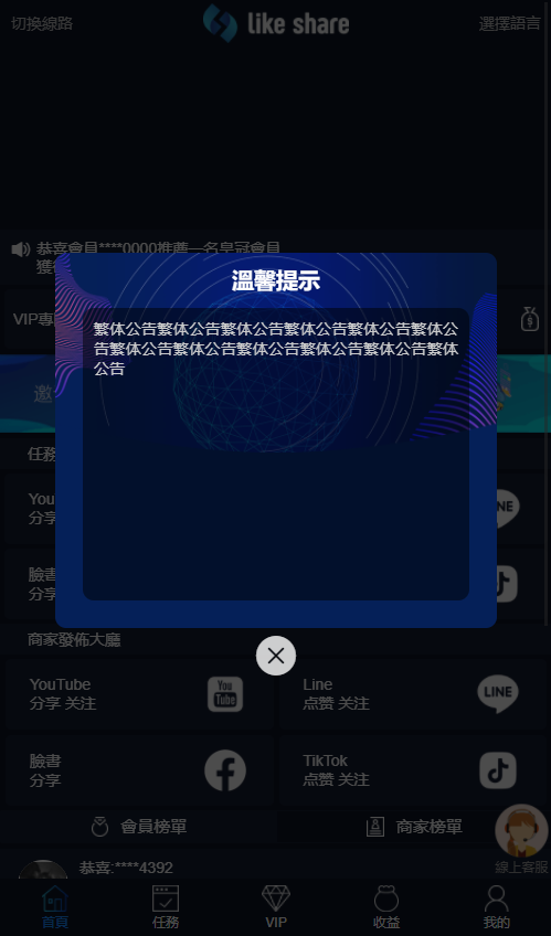 国际版多语言点赞抖音分享点赞任务平台源码(九种语言)/附带VUE