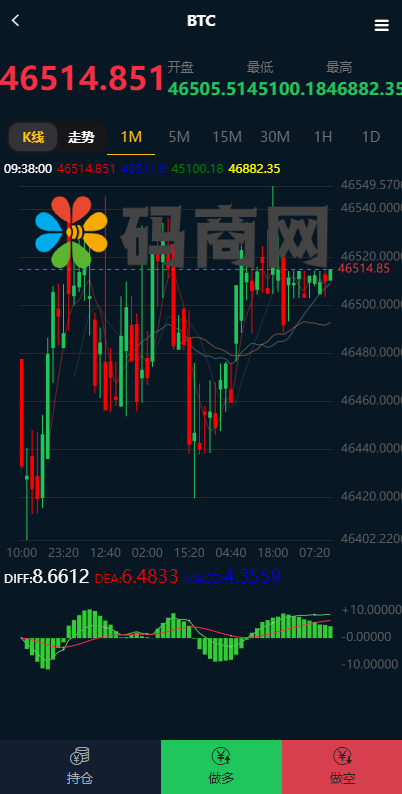 K线完美正常实时跳动,需要国外服务器安装,系统为虚拟币USDT充值
