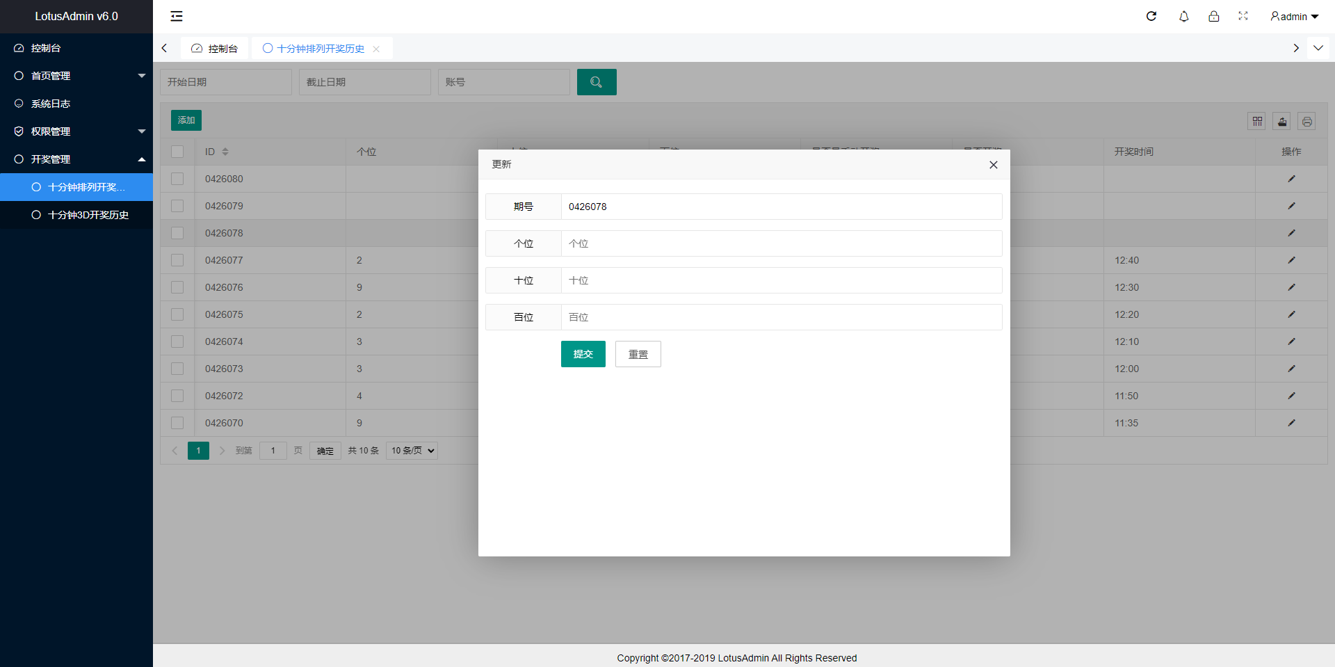 开奖号码自动采集的,也可以自己后台手动设置开奖信息