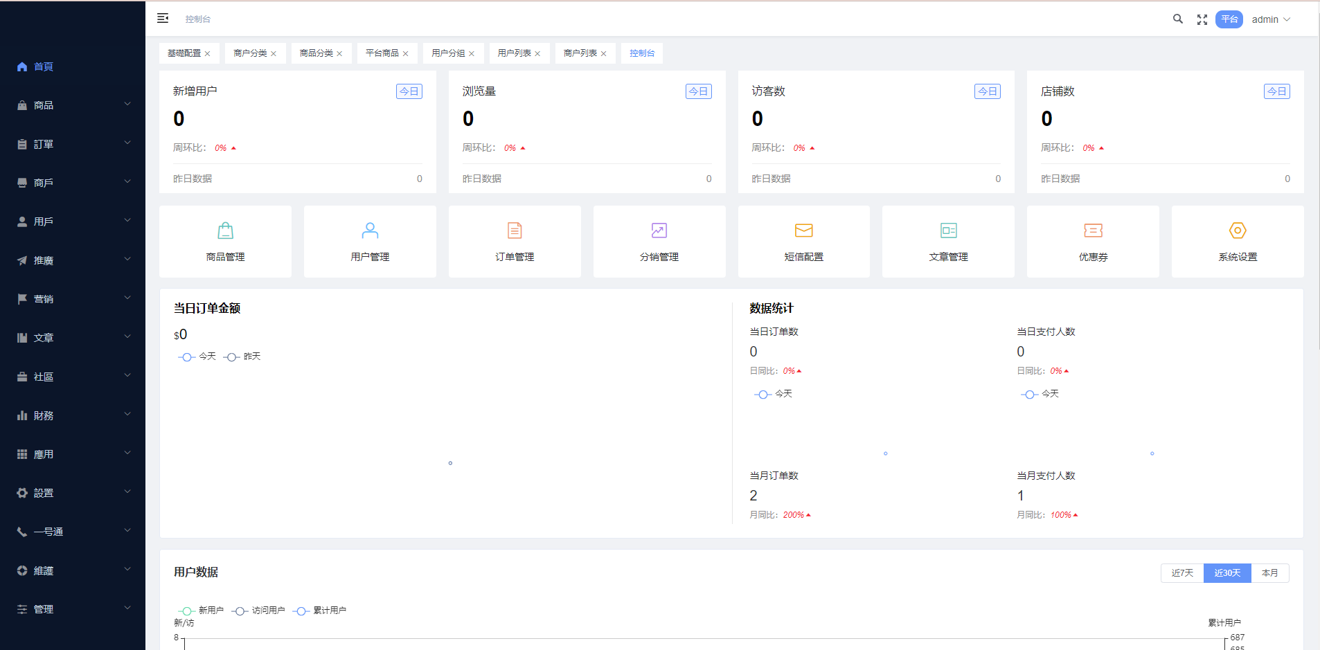 系统特点关键词:多商户入驻、商品一键铺货、进货差价、平台代发、商品采集、店铺保证金、USDT充提、店铺虚拟访客关注加购数据、一键批量注册用户、批量下单爆单、定时下单、自建物流信息等
