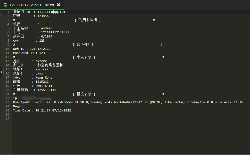 截图的是一套普通的cvv钓鱼代码,就是前台用户填写信息,网站自动生成信息,源码支持屏蔽地区
