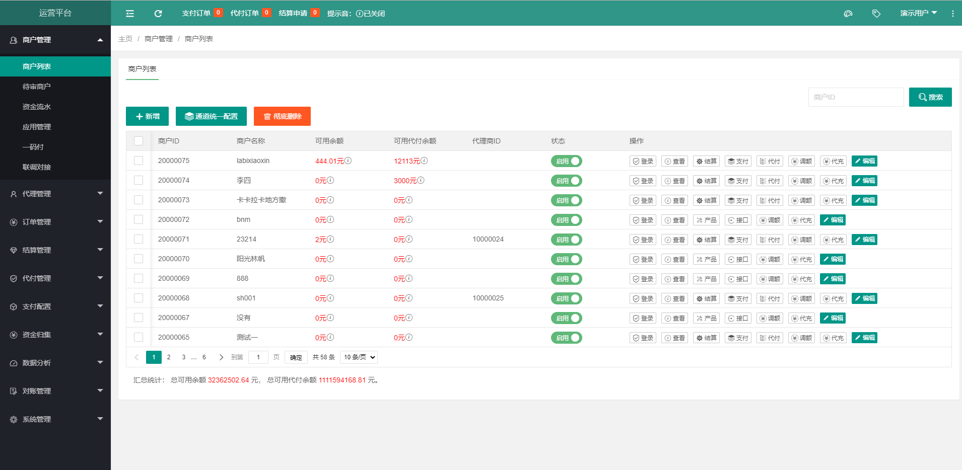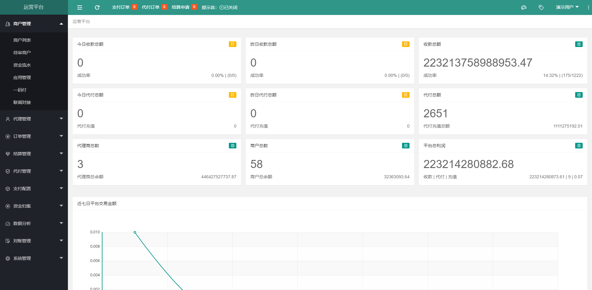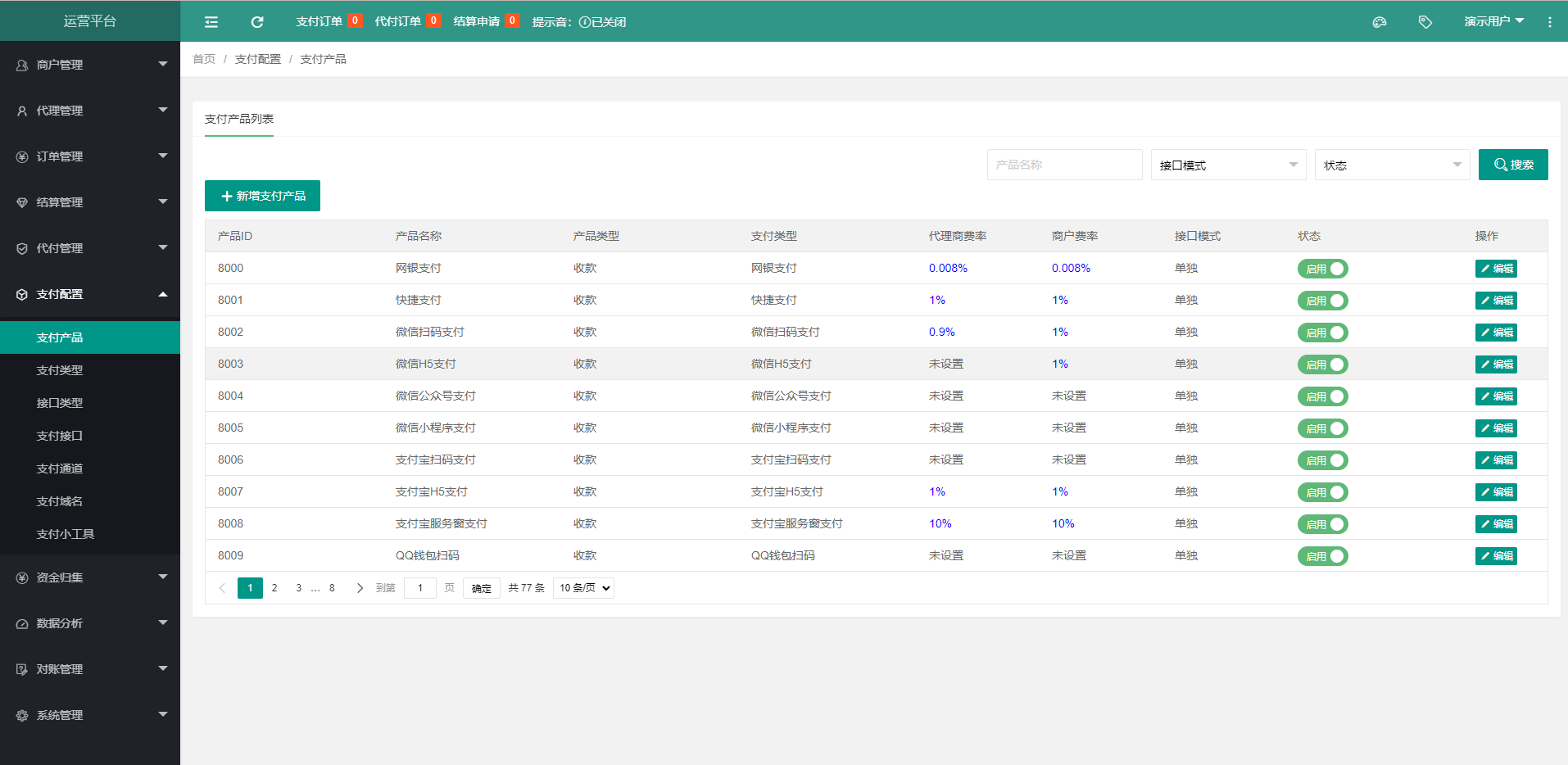 完善的支付通道,代付通道对接,实现通道、以及通道子账号的接口轮询。