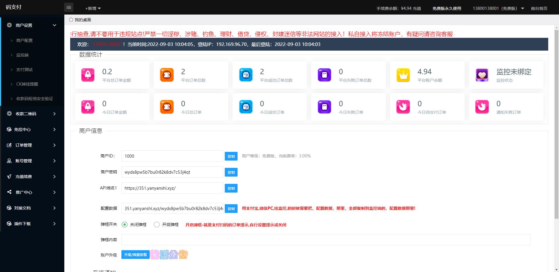 此系统是运营版的,不要跟以前发布的比较,相比都知道年初的时候支付宝更新了协议,网上那些免挂扫码的都失效了,以前发布的老版本也是的
