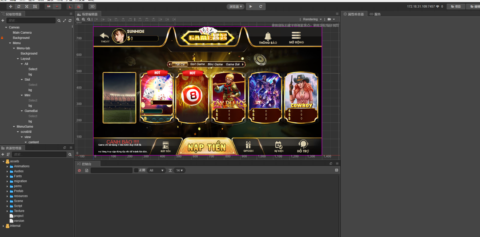 纯越南语cocos超精美电玩游戏3套UI/拉霸竞猜/带控制/纯源码非组件