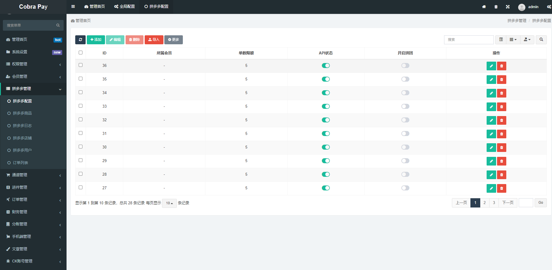 系统几乎附带了市面上的所有接口类型,系统方便二开其他接口