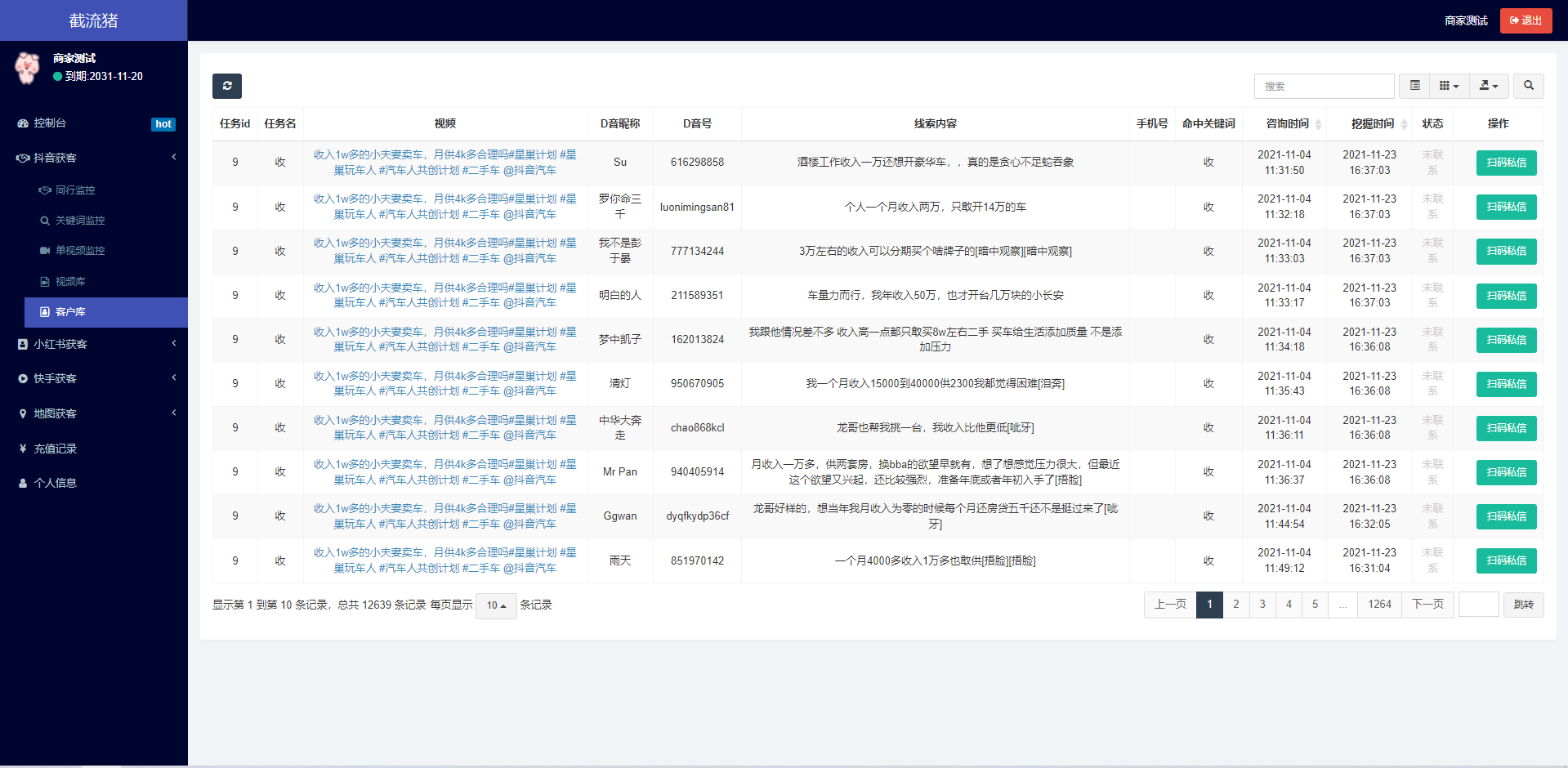 抖音快手小红书询盘 短视频询盘获客 抖音监控同行 抖音采集客户