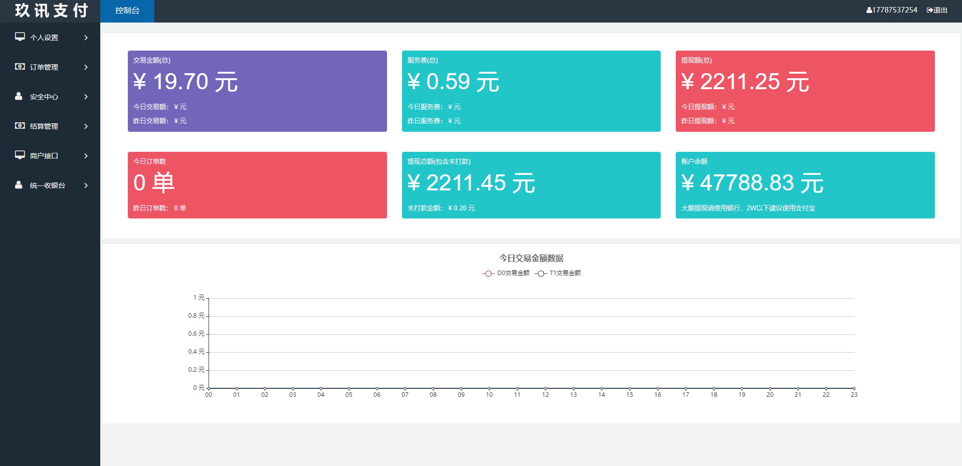日账单、月账单,系统清晰记录所有收款数据,支持网站商户后台以及公众号和客户端APP进行查看