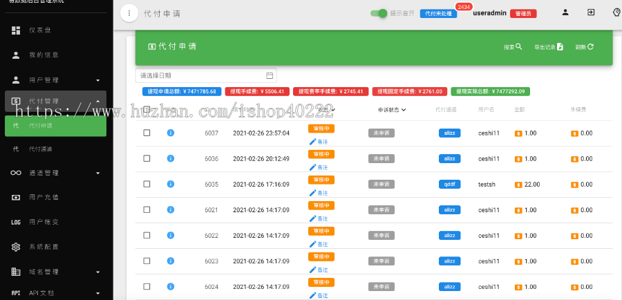 5、支持API接口代付/后台代付