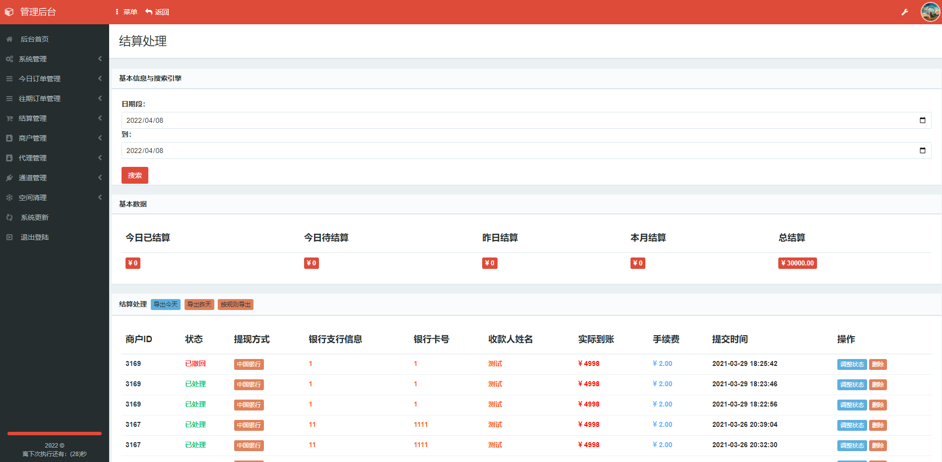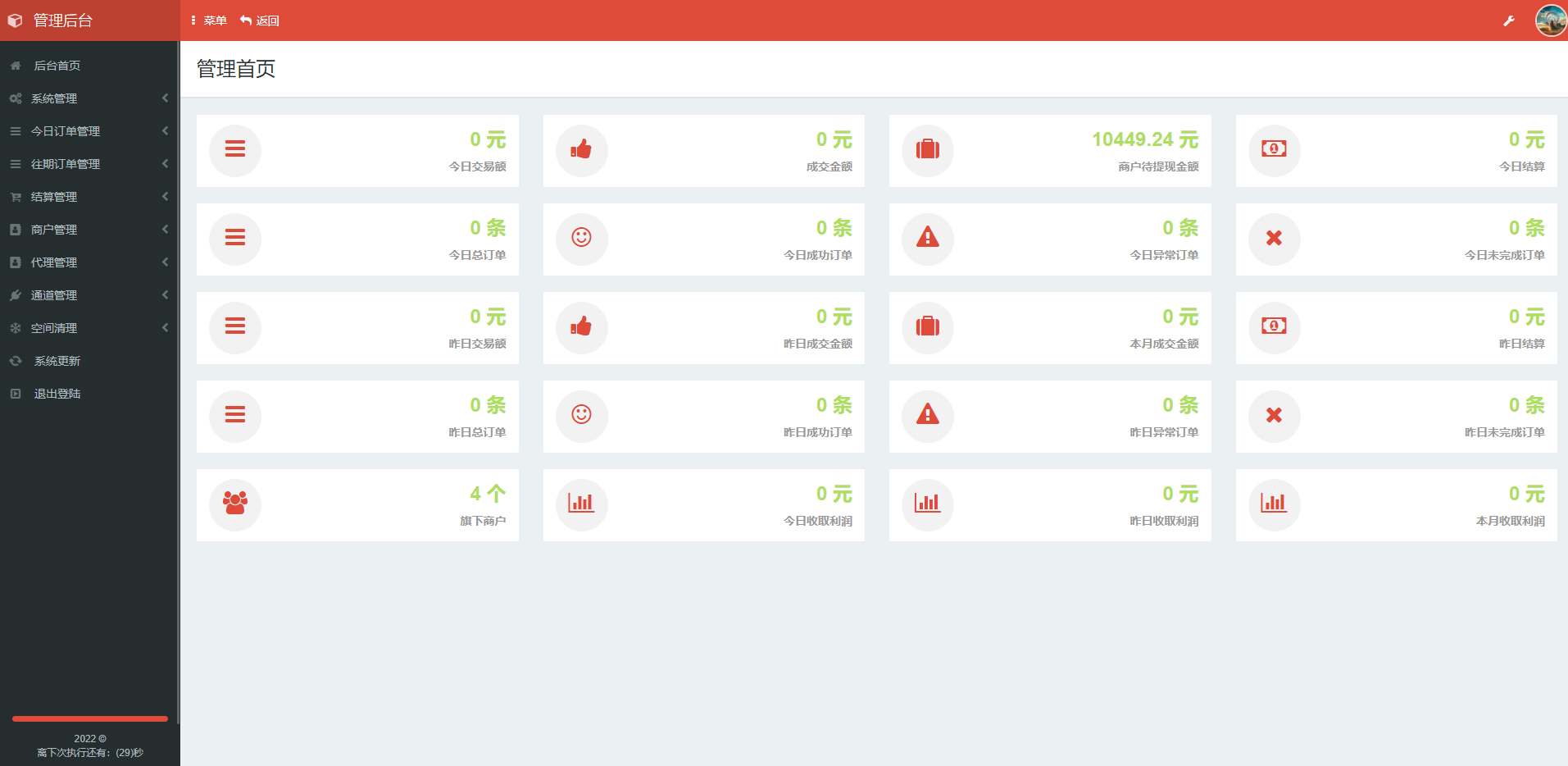 全新企业化支付程序,高效安全,自由性通道对接与分配,用户通道独立分配,独立费率设置,代理系统,通道多元化融合,【多种用户登录验证模式】,【子账户轮训模式】,批量设置通道或费率等等人性化功能,程序自带安全盾,阻断常见渗透等等,做到坚不可摧。