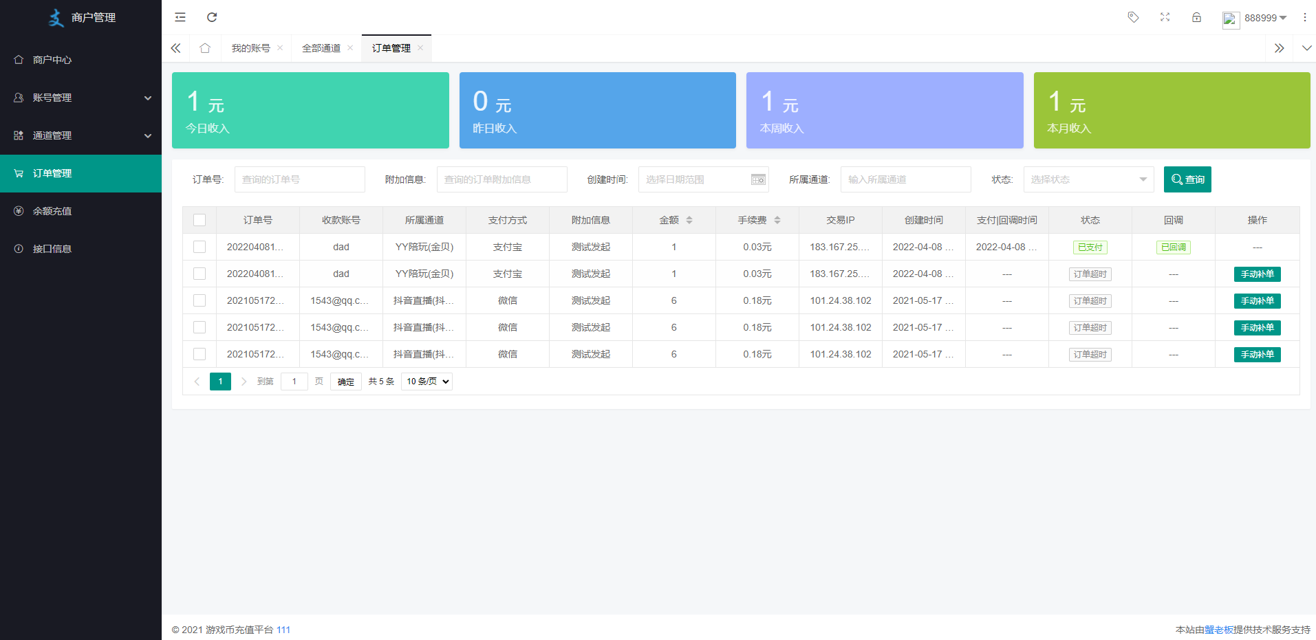 版本特性:全新UI,全新接口,系统为多商户版本,可招商入网,收取费率。回调稳定,抗并发,代码经过整理优化,使用起来稳定顺手