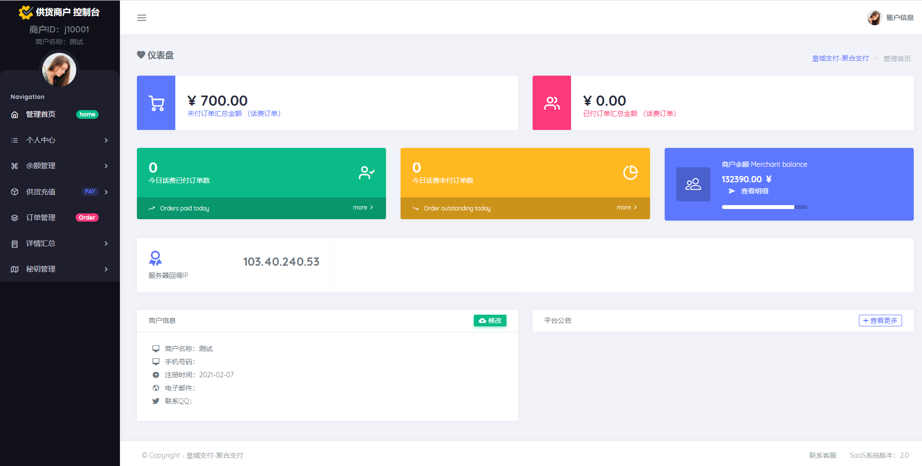 ⑤、有独立的商户后台和供应商后台可供供应商或商户查询订单以及官网订单号使用