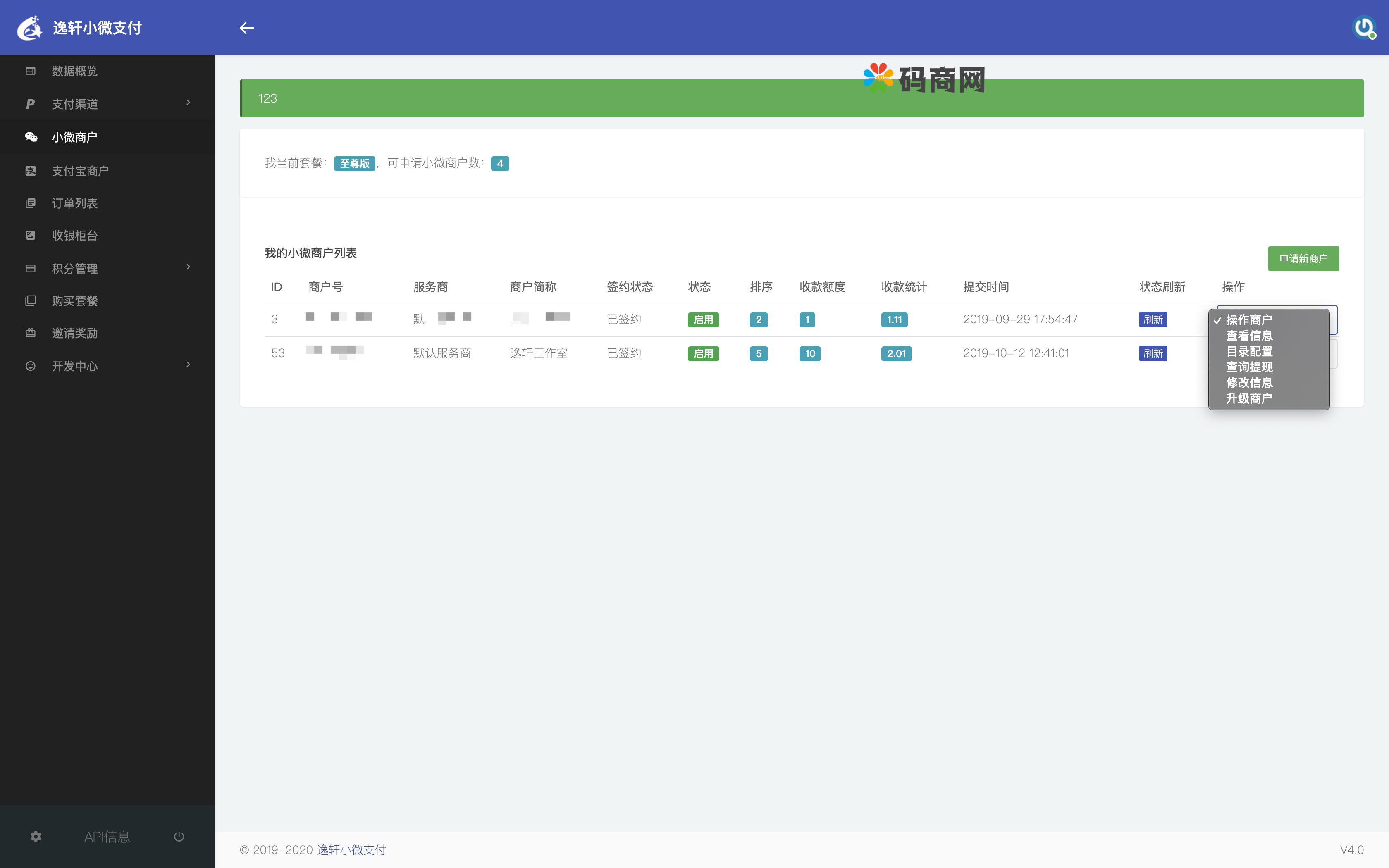 逸轩小微支付系统源码全开源版/微信支付宝进件支付/当面付小微支付