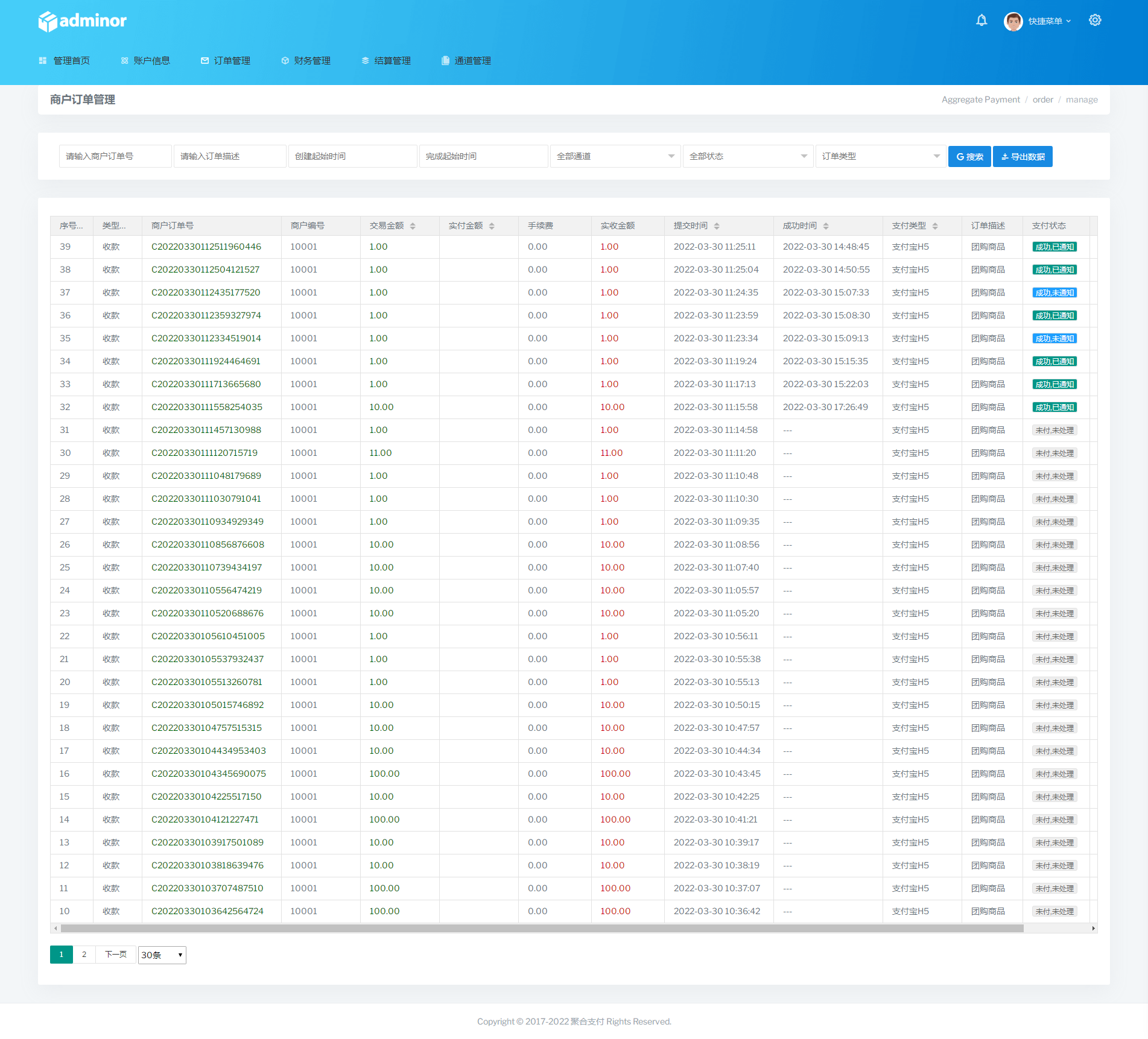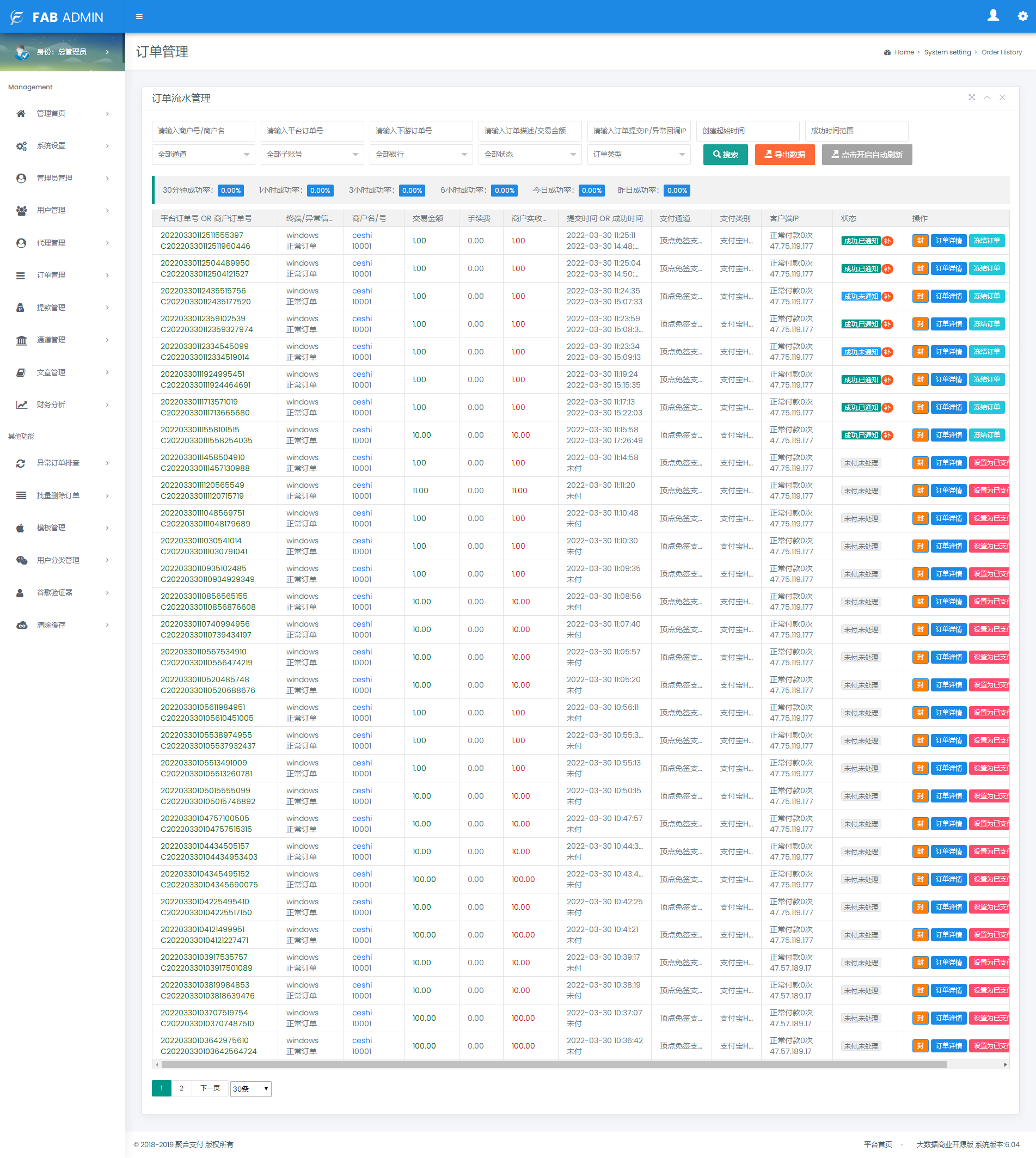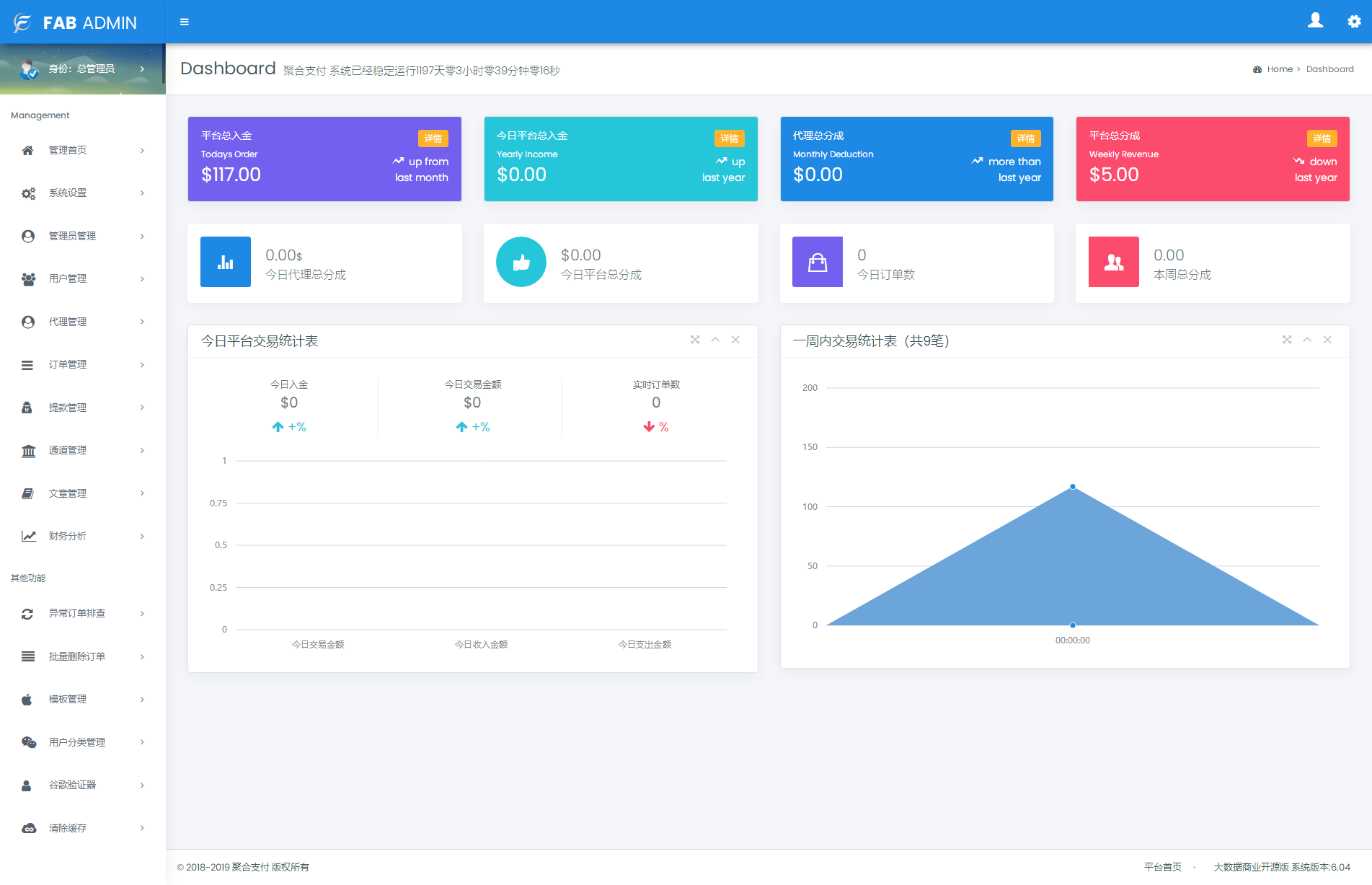 【帐号类型】系统后台多类型管理员、商户代理、普通商户、接口用户;对用的板块后台都不一样相关的数据统计齐全有效。