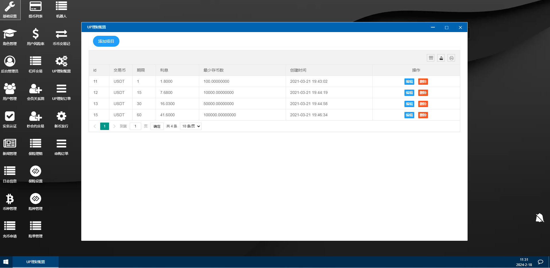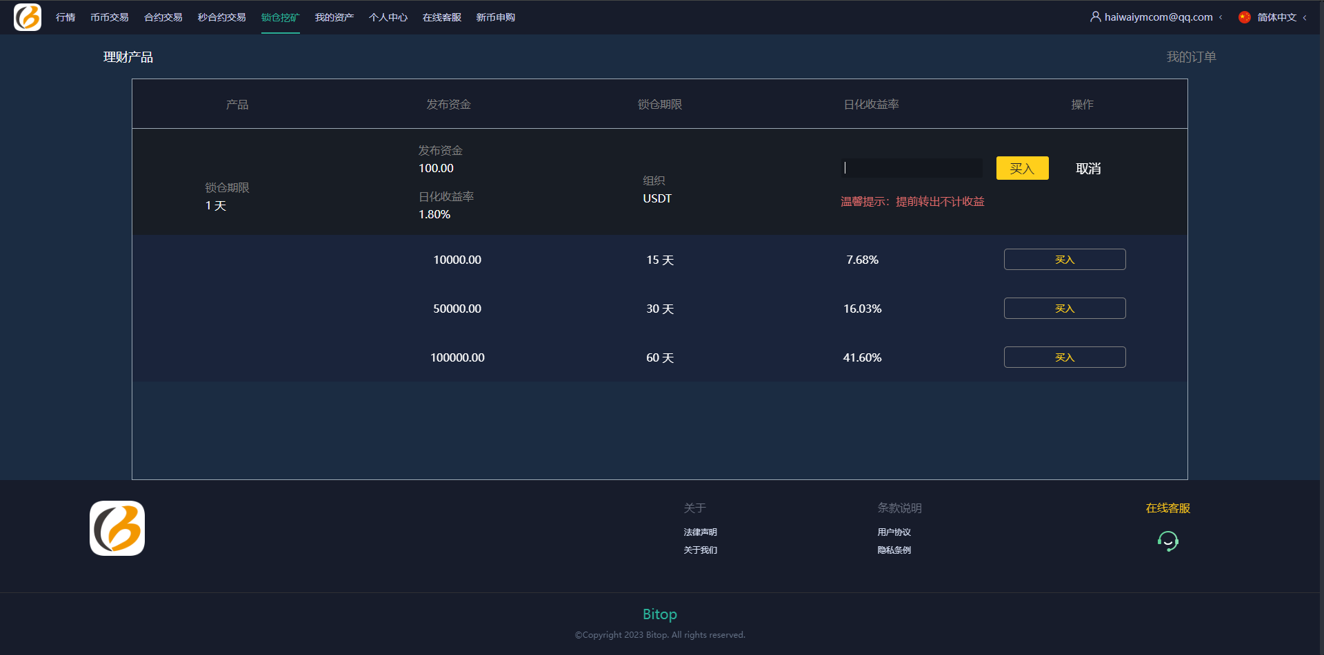 系统功能支持:秒合约、合约、锁仓挖矿、新币认购功能,无平台币