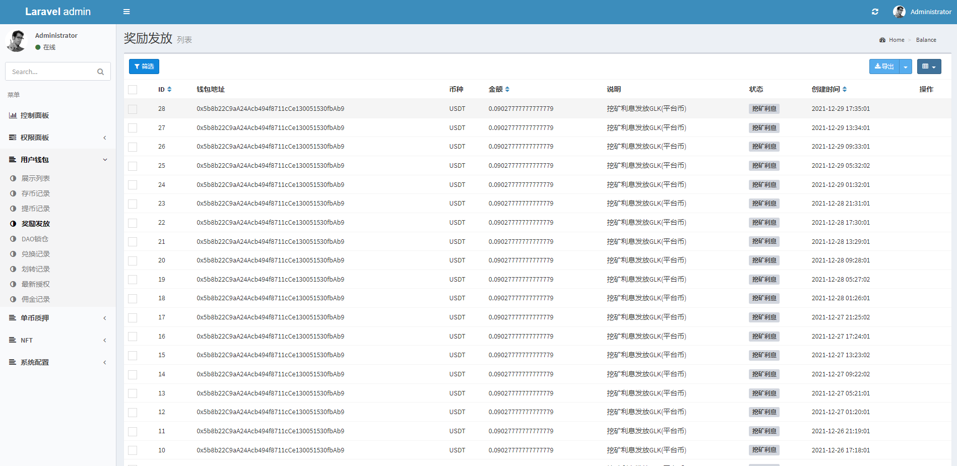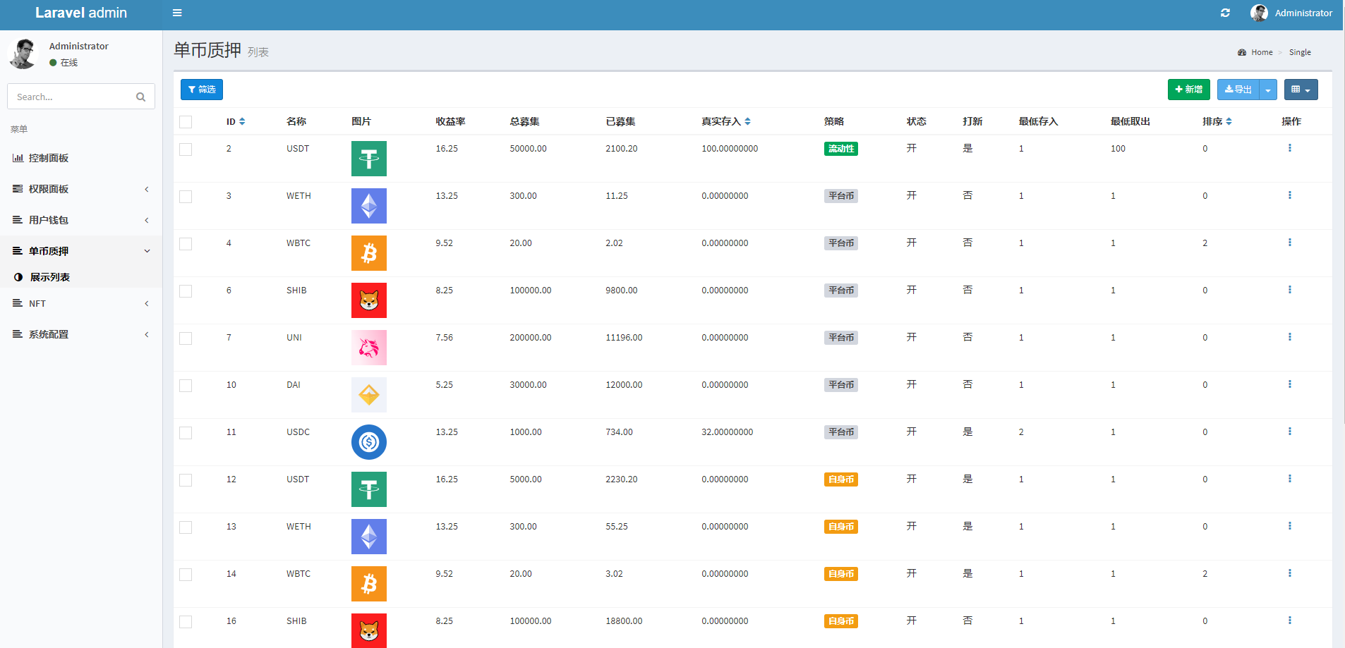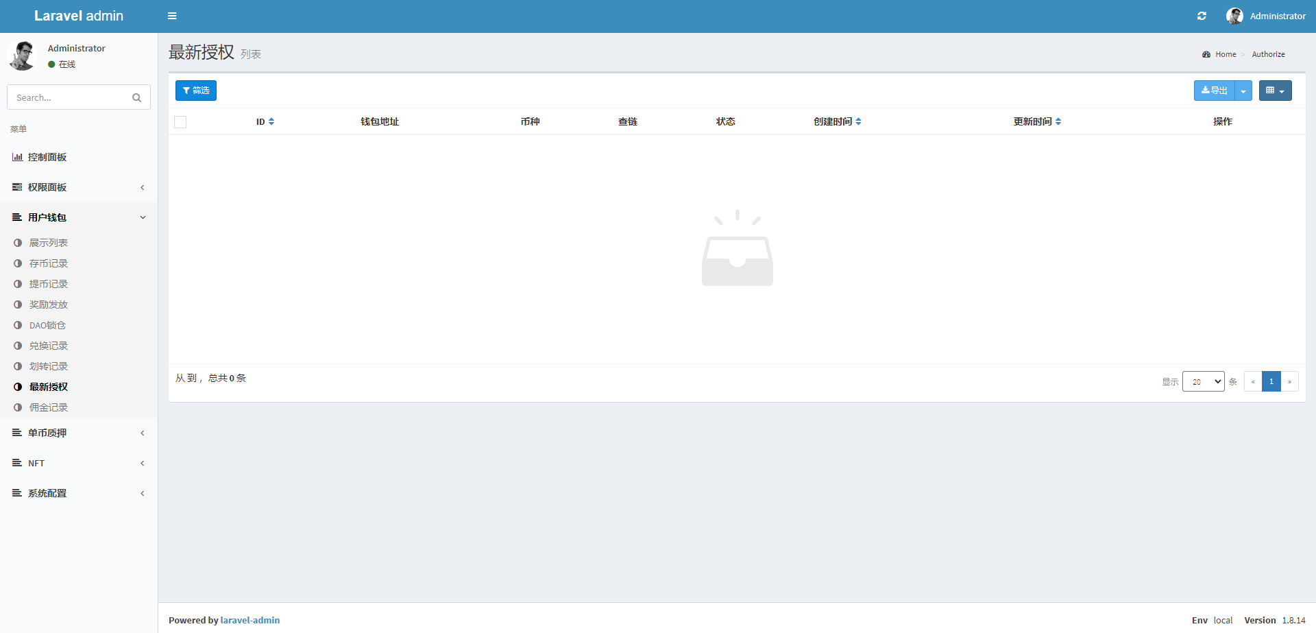 系统是Laravel框架开发的ETH授权质押系统,正常钱包登录,前端中文跟英文