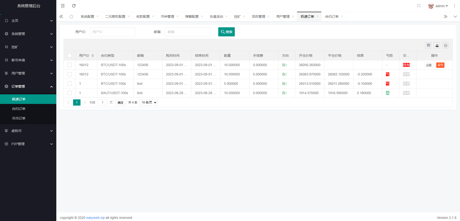 新版多语言交易所系统/秒合约币币交易/P2P理财派单抢单
